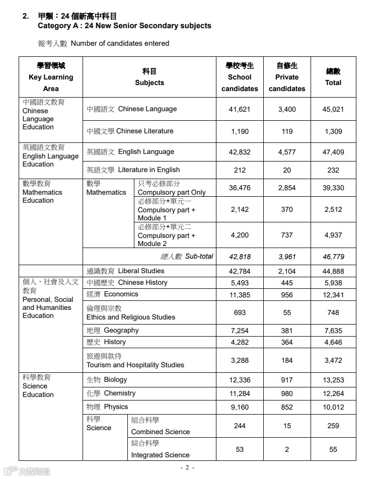至于最多学校考生报考的甲类选修科目依次为生物科、经济科及化学科。最多人报的选修科如下: