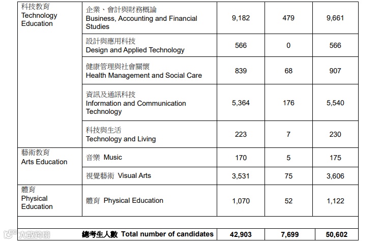 数据显示,约9成考生报考4个核心科目和2至3个选修科。甲类选修科目中,以生物科最多人报考,有1.23万人,其次是经济和化学。
