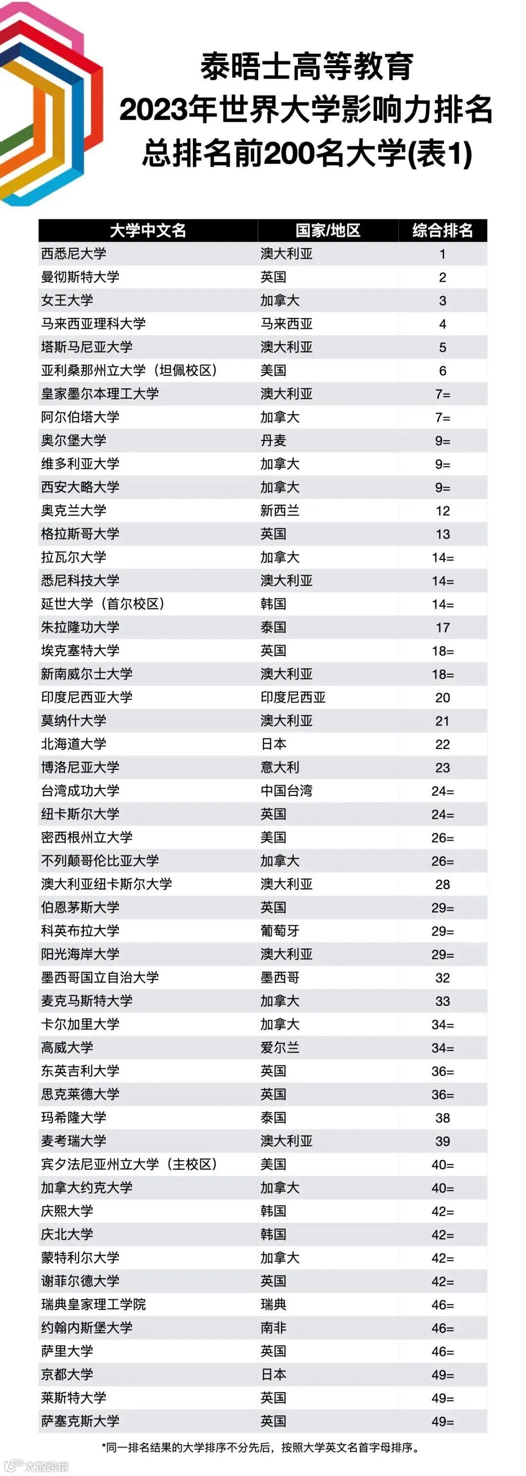 近期,THE泰晤士高等教育正式发布了“2023高等教育大学影响力排名”。