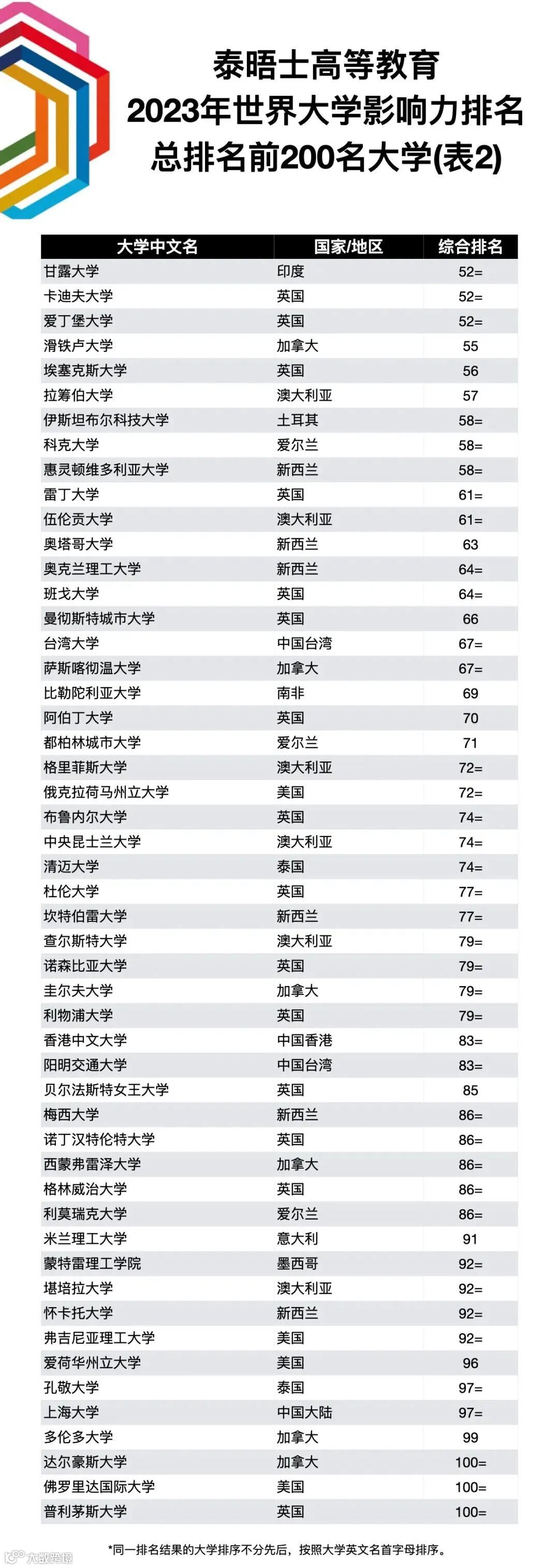 而中国台湾则有3所高校进入总排名前100名,以台湾成功大学为首,排名世界第24。这代表着中国在高等教育领域的崛起和实力的提升。