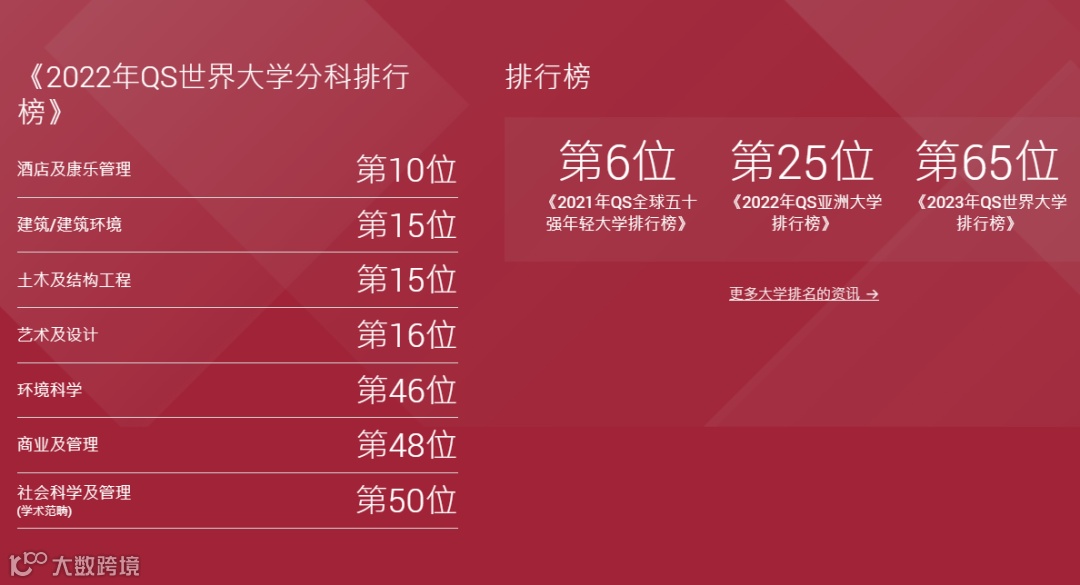这点从其在上海软科世界一流学科排旅游休闲管理类别连续5年蝉联第一,以及QS酒店和休闲管理学科连续5年排名亚洲第一也可以得到验证。