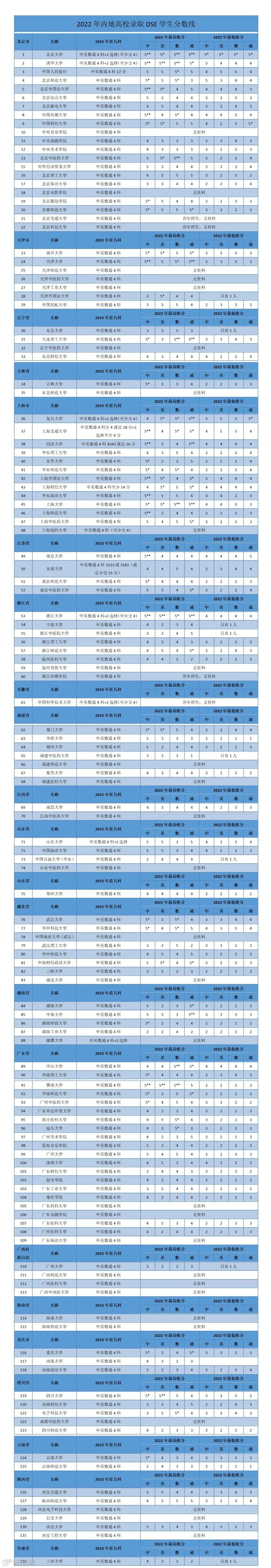 中华人民共和国教育部公布《2023年招收香港中学文凭考试学生内地高校名单》,内地可招收港籍DSE考生的大学也从129所增加至132所,又多了三所高校可供同学们选择!