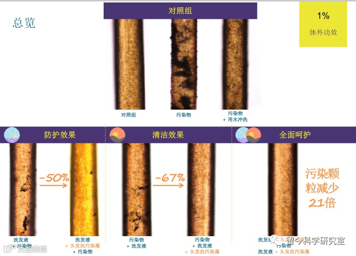 蠕虫叉红藻提取物(抗污染藻)能减少头发污染颗粒附着,让头发毛鳞片层更加平滑,头发更柔顺,轻松梳通打结头发