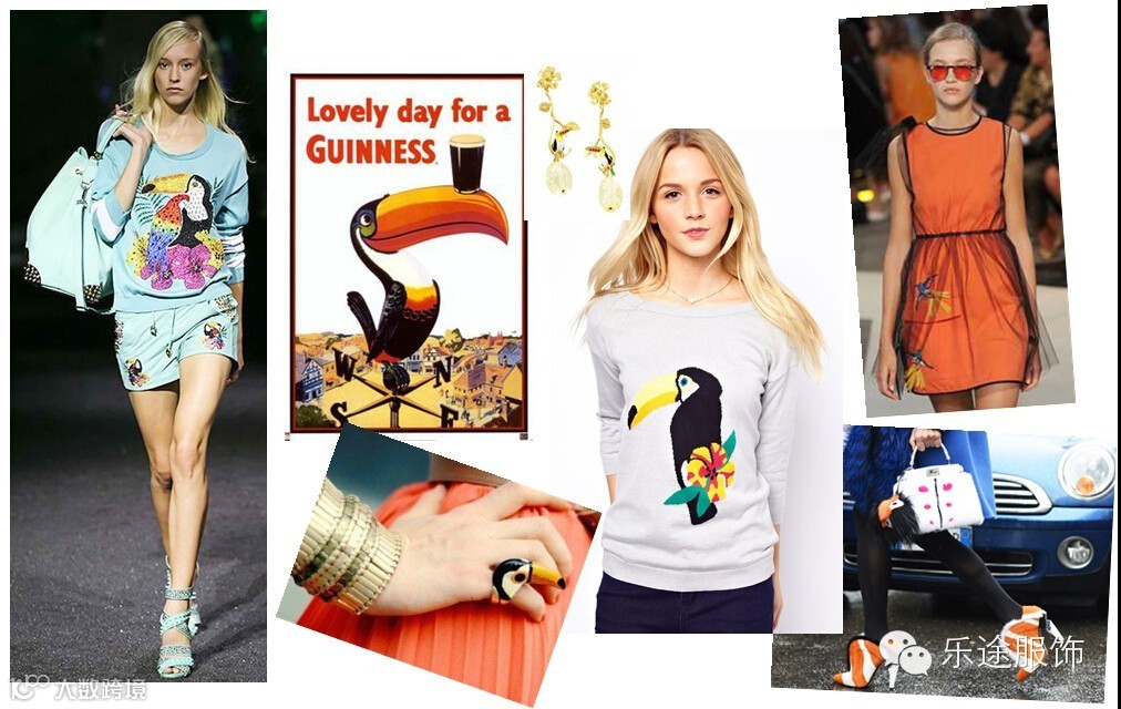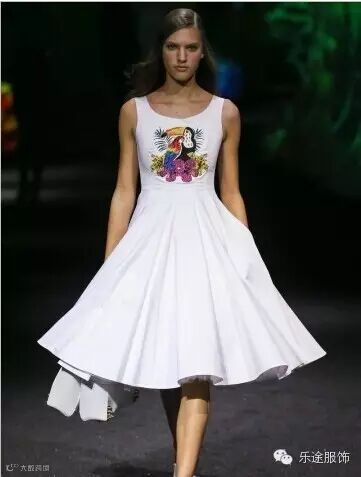 本季,鸟类元素居多,并多数以裙装为主。运用层叠交错的丝质印花,或是将动物元素扭转为摇滚风格都是本季不错的流行趋势。