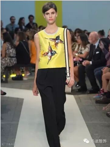 动物元素从往季单纯的兽纹印花上升为将动物的整体形象呈现在服装之上,昆虫、海洋动物、飞鸟等都成为2015春夏新宠,运用刺绣、印花或编织等形式带领我们回归自然,感受自然。