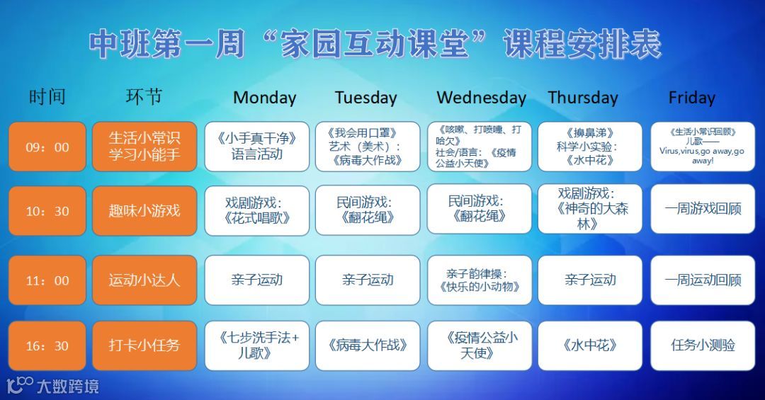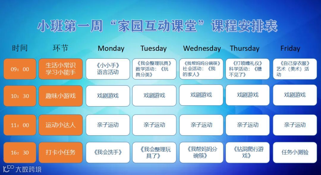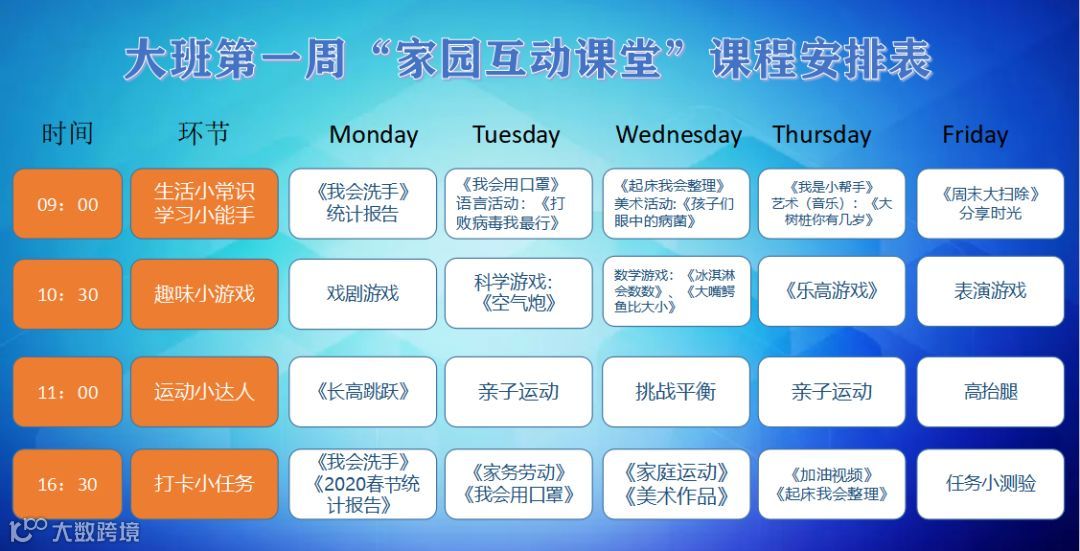 《家庭一日学习指南》(设计每周的课程安排及资源包,由老师在上一周五发布给家长)。