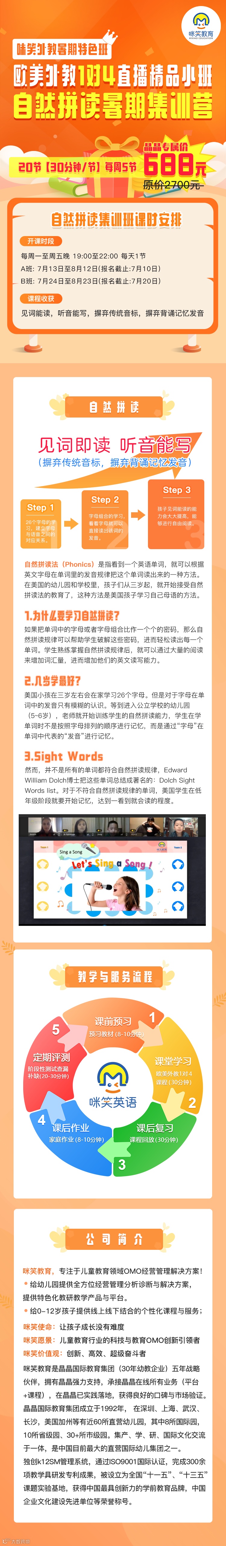 晶晶学员专属优惠,原价2700元,暑期优惠价688元,性价比最高的短期自然拼读集训班!没有之一!并选出3名“英语之星”送400元外教课!