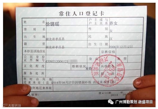 户口本本人页(即写着本人信息的常住人口登记卡)