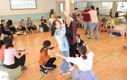 戏剧教学策略与方法的运用,老师们现场体验戏剧游戏的无穷魅力。