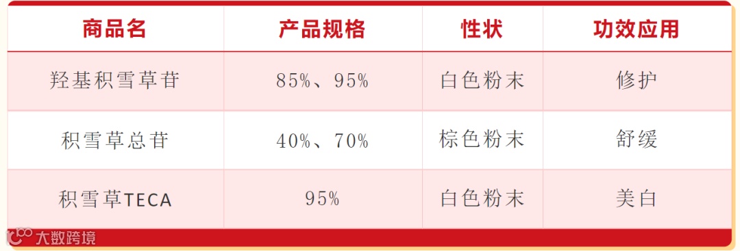 年产量和销售产量位居前列;积雪草提取物销量中国第一,世界前三