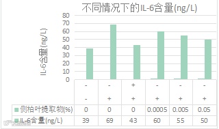 结论:LPS诱导的RAW264.7细胞能够建立NO升高,IL-6,IL-1β及TNF-α炎症细胞因子含量升高的炎症模型。侧柏叶提取物干扰后,能够显著抑制NO,IL-6,IL-1β及TNF-α含量,抑制细胞炎症,发挥了良好的体外抗炎症效果。