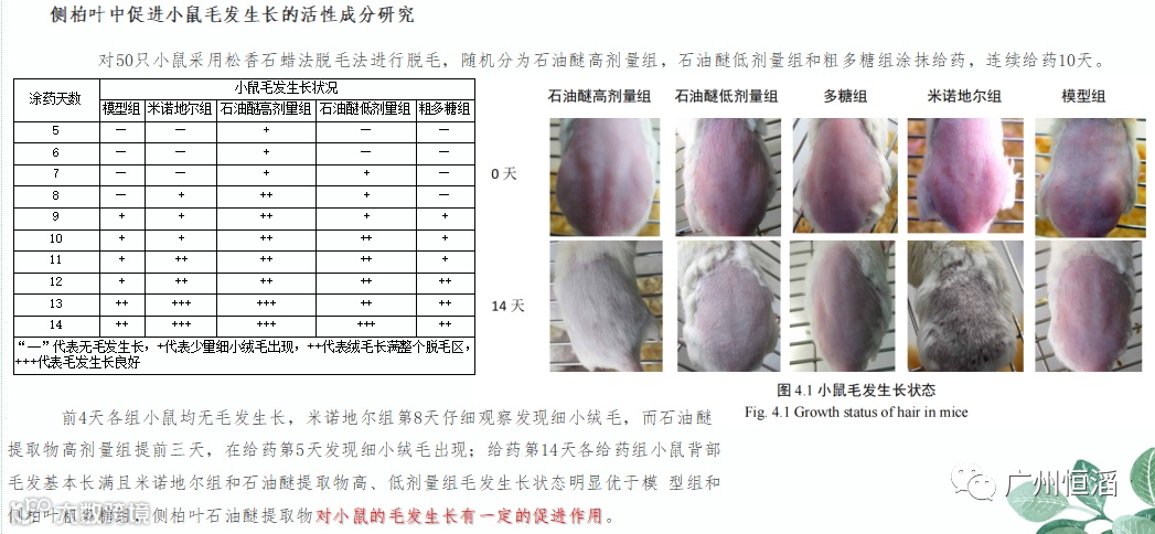 涂抹一定浓度的侧柏叶溶液(5mg/只/d、2mg/只/d )可显著促进 C57BL6小鼠毛发生长。