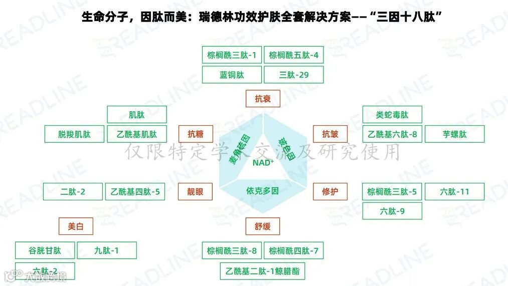 会上,瑞德林首次提出“三因十八肽”概念,涵盖护肤、抗衰、抗皱、修护、抗糖、舒缓、亮眼等多种应用需求,为客户建立功效护肤全套解决方案,高效解决肌肤问题。