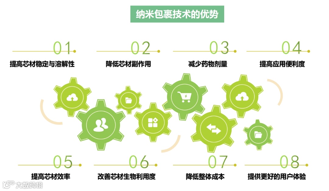 致力于包埋运载体技术,解决成分不稳定、刺激性、溶解性等原料痛点,对包裹芯材有增溶、稳定、保护、控释、缓释与靶向等效果,从而改善芯材的应用范围和使用性能。