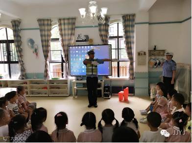 为提高幼儿的交通安全意识,近日,深圳市公安局交通警察局的叔叔阿姨们来到晶晶桃源学苑幼儿园,开展了主题为“开学第一课,交警说安全”的交通安全宣传进校园活动。上午9:00,交警们身着整齐的制服,走进了耶鲁班的课堂,采用内容丰富、形式多样的方式为孩子们打造了一个个生动有趣的交通安全宣传教育课。