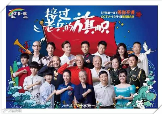 晶晶邀你一起看《开学第一课》,接过老兵的旗帜,传承先辈传统。