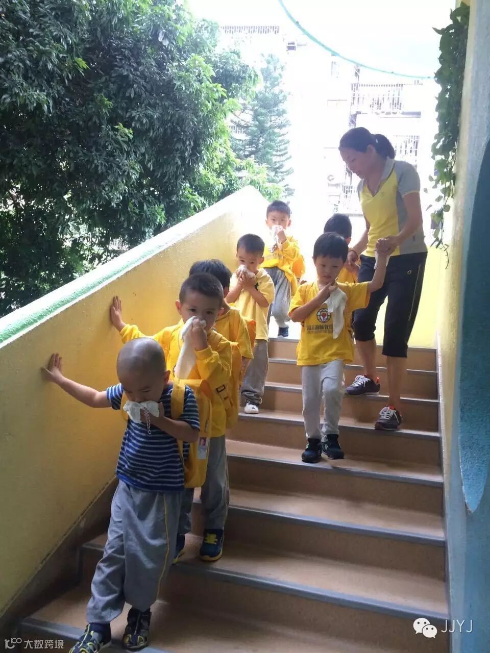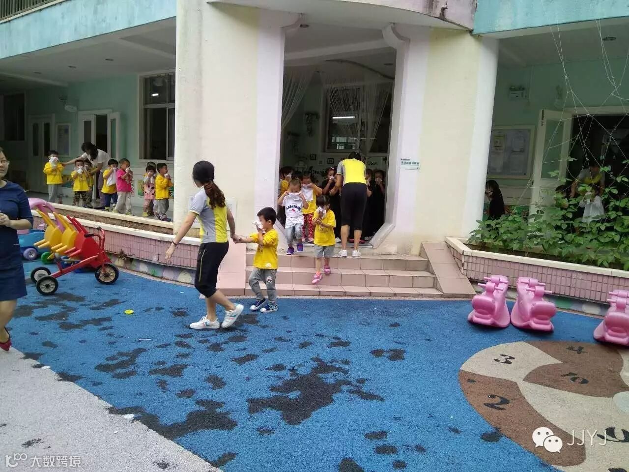 仅仅几分钟时间,教师带领幼儿跑出教室,最后,通过两个安全出口全体人员集合到空旷的教学楼在。集合完毕,清点好人数,检查有无落下的人员并向领导反馈。