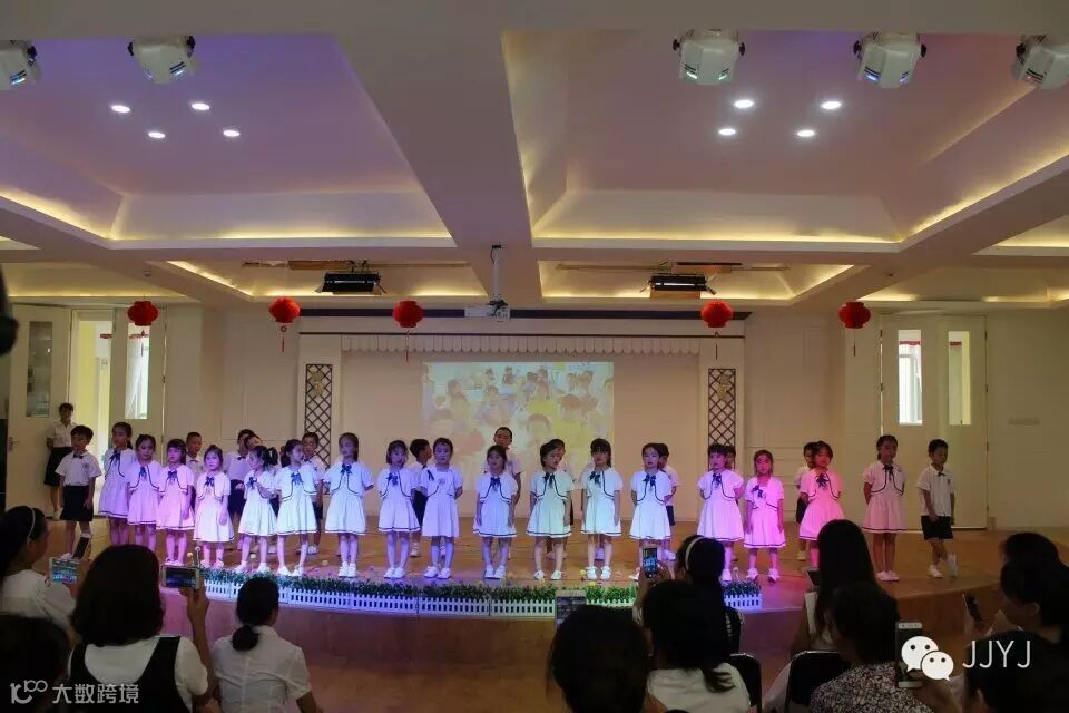 彩旗在飞扬,鸟儿在欢唱;阳光灿烂,照耀着小朋友微笑的脸庞,他们像似在表达对小朋友的衷心祝福,也像似在倾诉对老师、对幼儿园无尽的不舍与留恋。不知不觉间,一年的教育教学工作即将完成,大一班的孩子们将迈入小学的殿堂。2016年7月14日,是一个难忘的日子,因为我们大一班的孩子们将满载老师和家长们对他们殷切的期望和衷心的祝福,即将展翅飞翔。“放飞梦想,快乐童年”碧桂园晶晶幼儿园第一届大班毕业汇报演出在掌声中开始了。
