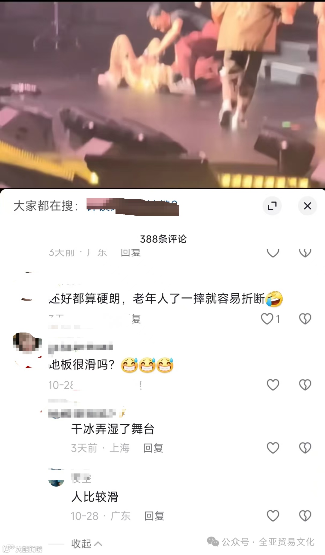 为什么在舞台上出现摔倒的情况?据现场的歌迷透露,可能是前一首歌放出了大量干冰,导致地板湿滑才不慎摔跤!!也有网友评论,说地上有干冰水,容易摔倒.....究竟是何种原因出现摔倒呢,是干冰惹的祸吗