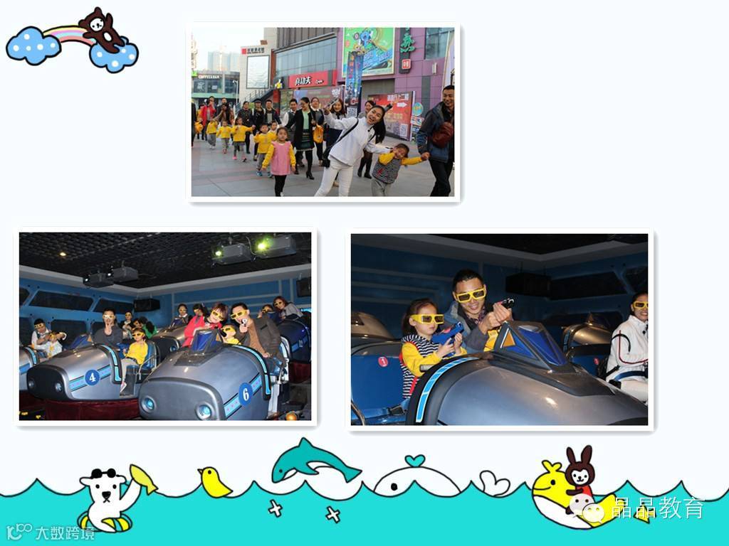 玩购主题乐园包含了欢乐星球主题馆、GOGO冒险岛、欢乐家庭大本营等项目。在活动中,我们先去欢乐星球主题馆,幼儿与家长感受5D电影带来的奇幻之旅,其次,又与同伴一起进入神笔马良馆,让幼儿感受到绘画的乐趣,与科技带来的奇妙。