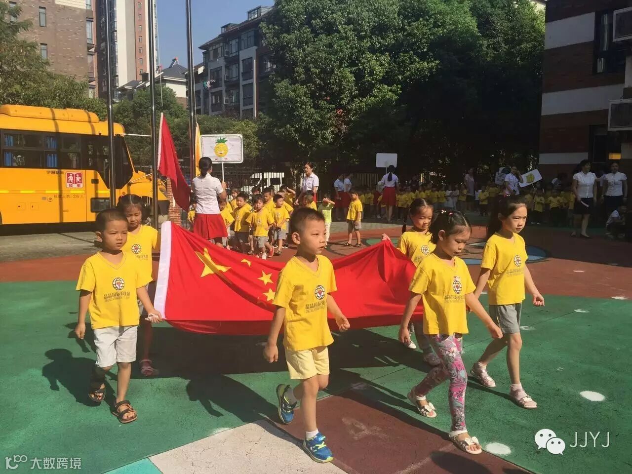 新学期新气象,开启新的希望;新的征程,承载新的梦想。2016年8月29日上午,晶晶大华幼教中心全体师生共同迎来了崭新的一学期。“大手牵小手”开学典礼活动在庄严的国歌声中拉开了序幕,大一班的护旗手们踏着整齐的步伐,带领着大班组小朋友牵着小班的弟弟妹妹们一起有序的入场;