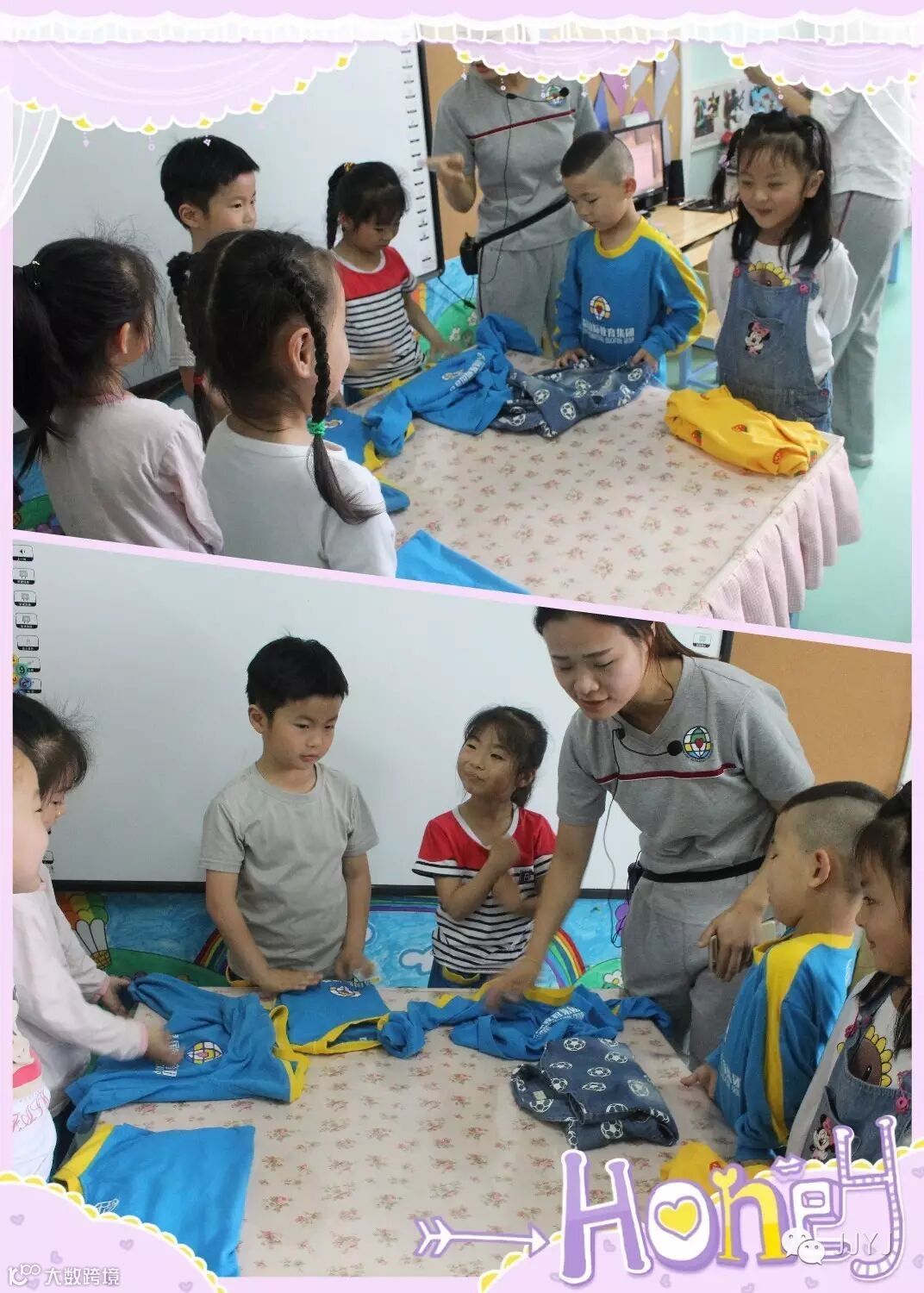 “自理能力——叠衣服”、“趣味亲子游戏”比赛。孩子们认真的按照叠衣服的流程,脱衣服——翻衣服——叠衣服的三大过程进行折叠。孩子们的爬行比赛,孩子们从中获得了成功感。