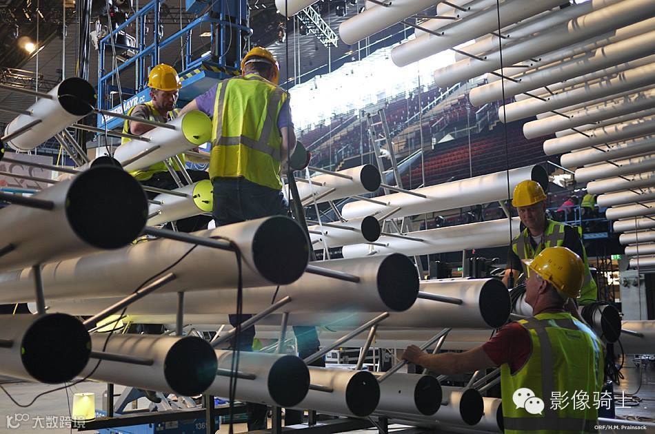 环绕舞台的管已经抵达,这就是我们第一次看到它。一共有1288管会共同构成了舞台的眼形,并会亮起来,每一首歌都会有无穷的变变幻。