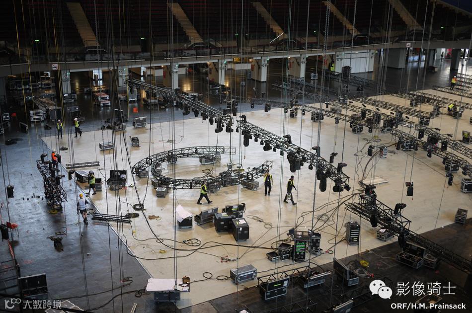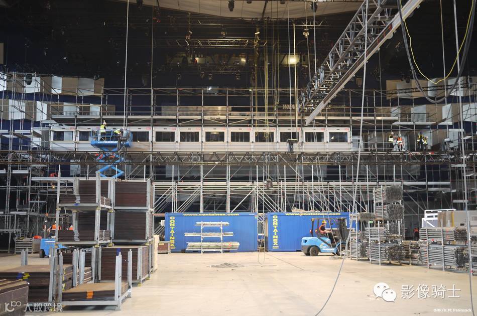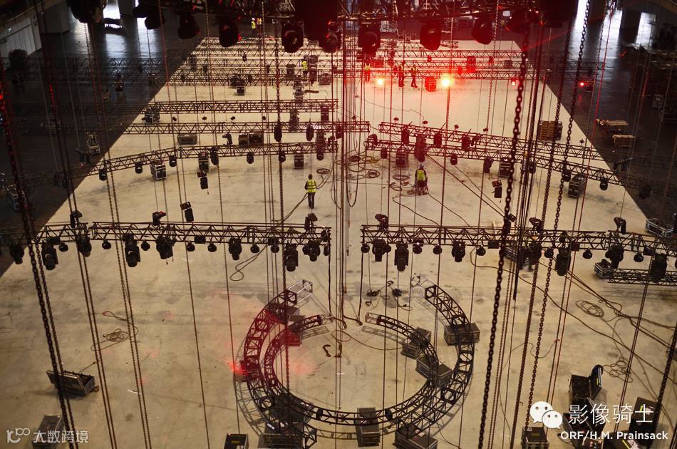 眼睛的形状开始走到一起,LED后墙到位。主圆形舞台地板也可以看出。