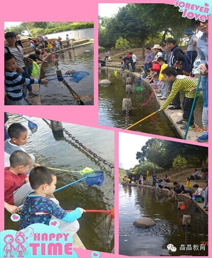 接下来就是丰富多彩的游戏环节,在“木头人”的游戏中,小朋友们摆出各种各样的造型,从个人到两人再到多人的合作,玩的很开心。还有有趣的“捞鱼”,在清澈见底河水边,好多鱼儿在游来游去,大家都迫不及待地拿起鱼捞开始“工作”,爸爸妈妈则担任安保工作。可是我们一走近鱼儿都跑了,大家一边捞一边想办法,尽管最后没有成功把小鱼带回家,但是大家玩的很尽兴。