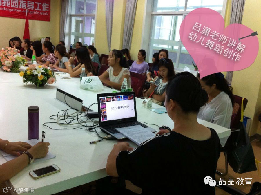 2014年9月12日上午,原中国空政文工团副团长、现晶晶国际教育集团儿童艺术团贾乃正团长及晶晶国际教育集团儿童艺术团助理吕潇老师举行了艺术团创编分享会,与晶晶集团的全体英语和舞蹈老师们分享了幼儿小剧创编及舞蹈创作知识。