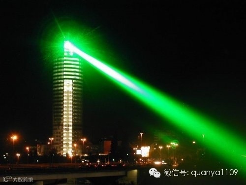 户外地标激光灯采用的是DPSS固体激光器,该激光器具有光束质量好连续激光可打绚丽光束、二维图形、水幕电影 、寿命长,可靠性高,维护和使用方便等优点,被广泛用于大型激光表演,楼顶激光地标,科学研究等领域。