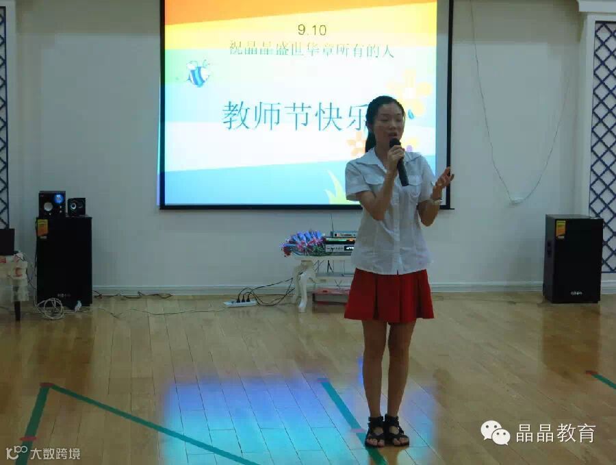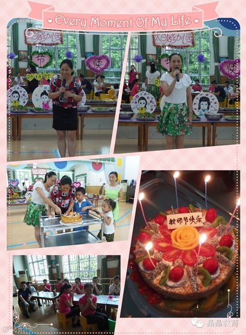 长沙盛世华章晶晶幼儿园为了庆祝教师节安排了大合唱、吃蛋糕、写愿望、互相送花、观看神秘PPT、微笑之星的颁奖、教师助兴表演、游戏、等环节,大家相当配合和开心。