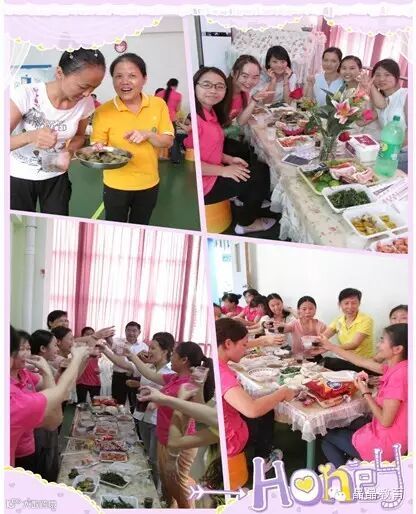 这次的教师节自助餐活动,由幼儿园厨师班担任主力,工会策划全体教职工参与制订制菜谱,部分厨艺高手参与制作分工合作完成。在活动一开始,大家就被浓浓的菜香所包围,所有美食均是色香俱全。在互动环节中,老师们不仅合唱了《好大一棵树》,更为自己选择作为一名教师而自豪。