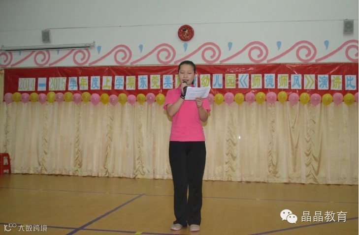 为加强师德建设,大力弘扬师德师风,增强幼儿园教师职业使命感,9月24日晚上6:30,东莞晶晶风临美丽湾幼儿园在工会主席黎月霞老师的组织下,在幼儿园二楼舞蹈室开展了“师德师风”演讲比赛。