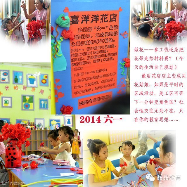 孩子们在开设的买卖性质区域中,尽情的游玩。时而到消费区购物——买杯糖水、吃个蛋糕......时而到赚钱区劳动——做花、叠毛巾。