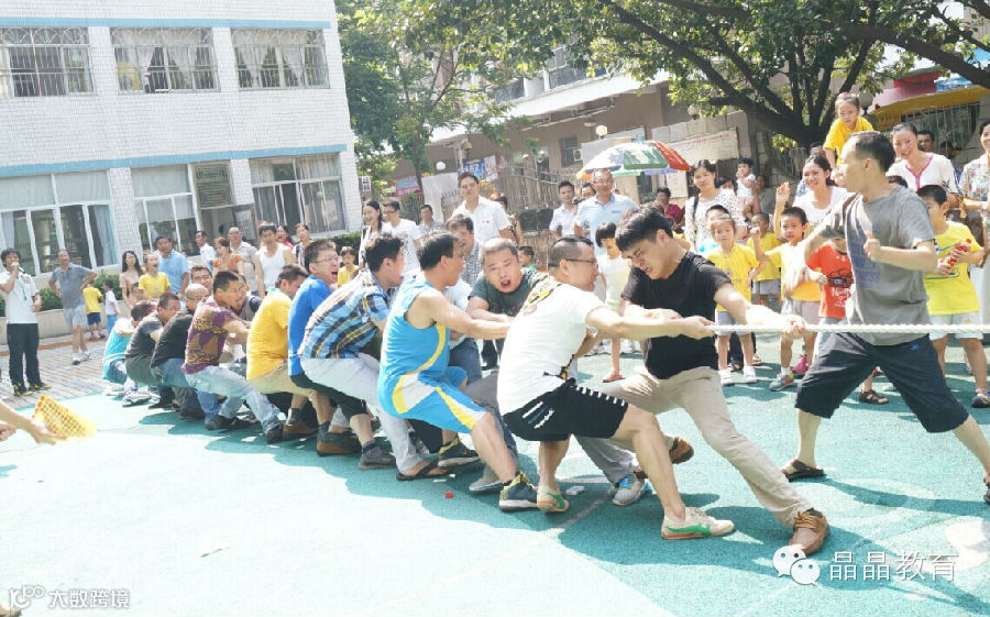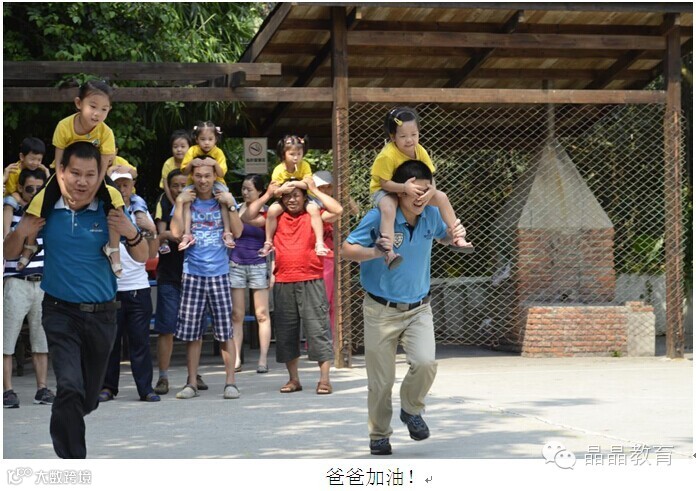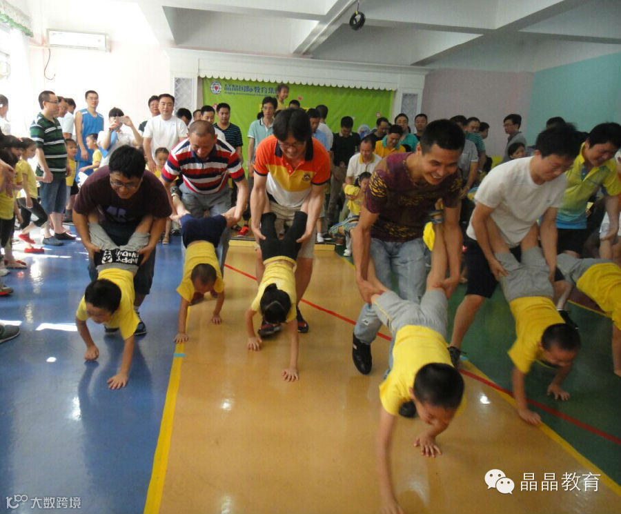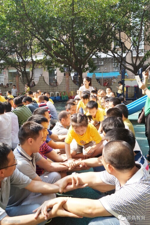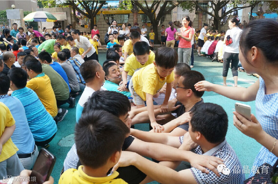 接着,在老师的带领下,父亲与孩子手牵手跳起了欢快的恰恰舞蹈,虽然动作谈不上那么的优美,但现场温馨的气氛却感染着在场的每一个人。随后爸爸高高地将孩子举到自己的肩膀上坐下,让孩子体会“骑大马”的乐趣。之后孩子们坐在爸爸的背上全体爸爸毫不犹豫地做起了俯卧撑。开飞机、小树抱大树、能量传递、袋鼠跳、手推车的游戏让孩子充分体会到了爸爸强大的力量。在亲子游戏的过程中父亲与孩子其乐融融,父亲的爱得以淋漓尽致地表现,孩子的欢笑声响遍整个操场。最后爸爸拔河比赛将活动气氛再一次推向了高潮,爸爸们在努力为班级争取荣誉,孩子们在一旁为班级呐喊助威,经过几轮角逐之后大一班荣获本次拔河比赛的冠军。孩子们还精心为爸爸准备了节日的祝福——一副绘画作品《我心中的爸爸》并亲手为爸爸端上了一杯水,送上炎炎夏日的清凉。那一刻,爸爸心中的感动无法用言语来形容,那一刻,孩子的内心因为成长的道路上有爸爸的亲身参与变得更加幸福与坚强。感谢爸爸们的参与,感谢老师们的精心策划与组织,今后希望爸爸能更多地参与到幼儿园的活动中来,共同体会孩子成长的乐趣!