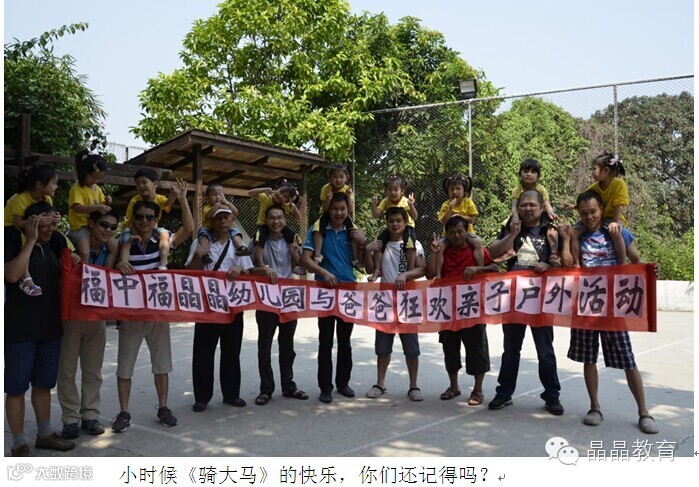 福中福晶晶幼儿园组织开展了“感恩有你”父亲节主题教育活动。中、大班每名幼儿在老师的指导下为爸爸制作一份精心的礼物。小班组则组织部分家长到户外开展了别开生面的“与爸爸狂欢”亲子活动。活动中,爸爸和孩子们通过玩《骑大马》游戏、送《爱心》贺卡,音乐活动《亲亲爸爸》等,让爸爸和孩子们充分互动,较好地增进了父子(女)之间的感情。孩子们的真情表白,让爸爸们深受感动,激发了他们更加积极参与孩子教育活动的热情,同时也培养了孩子们的感恩意识和责任意识。