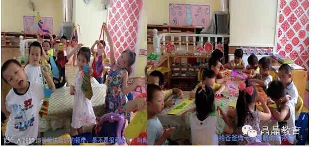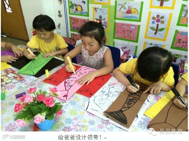 6月13号,天健香蜜幼儿园的孩子们通过“我给爸爸做领带”、 “我给爸爸做手表”和“我给爸爸送贺卡”等丰富多彩的活动,共同迎接父亲节的到来。通过一系列活动,让幼儿从小懂得尊重长辈、知恩图报的道理。