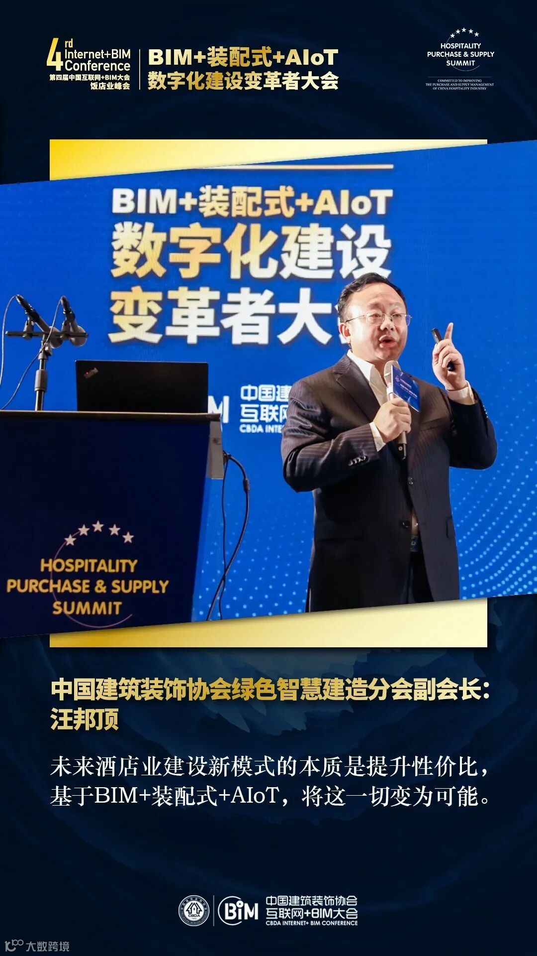 中国建筑装饰协会互联网+产业链分会副会长汪邦顶在以《酒店业建设新模式与发展新趋势——BIM+装配式+AIOT》为主题的演讲中提出了酒店建设新模式的解决方案。