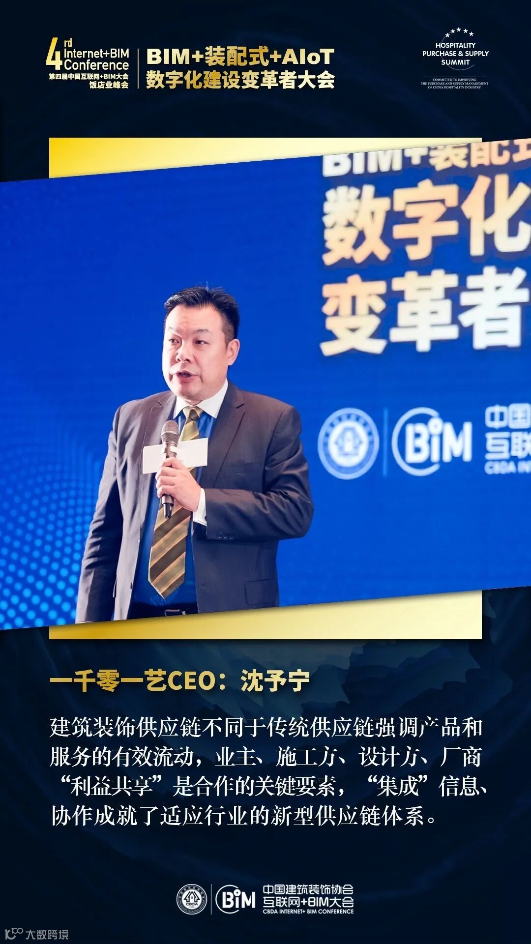 一千零一艺(ART1001)首席执行官(CEO)沈予宁在以《新型供应链模式助力智慧酒店的跨时代发展》为主题的演讲中对“服务建筑装饰工程每一环”进行阐述:从设计、采购、金融、安全、劳务、施工、管维等方面解决效率、成本和质量三大痛点问题。在产业链精细化协同也要依托数字化为基础,同时来建设精益管理模式,促人效、财效,形成整体效益的增值,这是趋势。而数据智慧化让供应链皆未来。