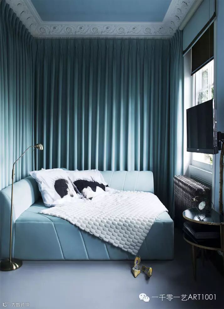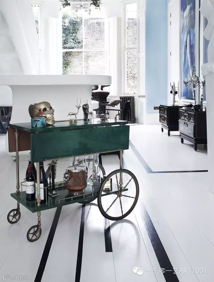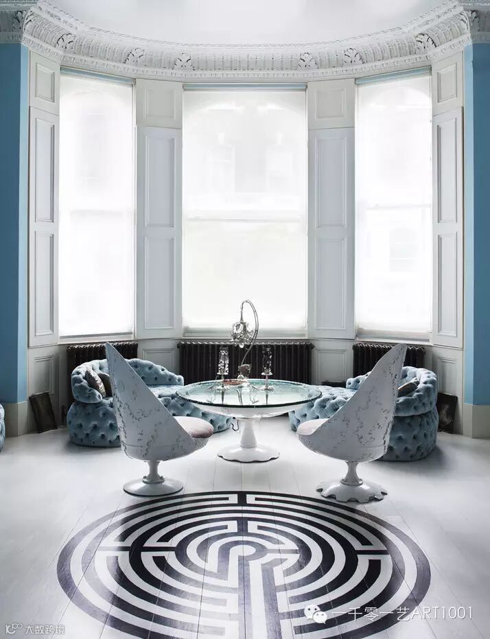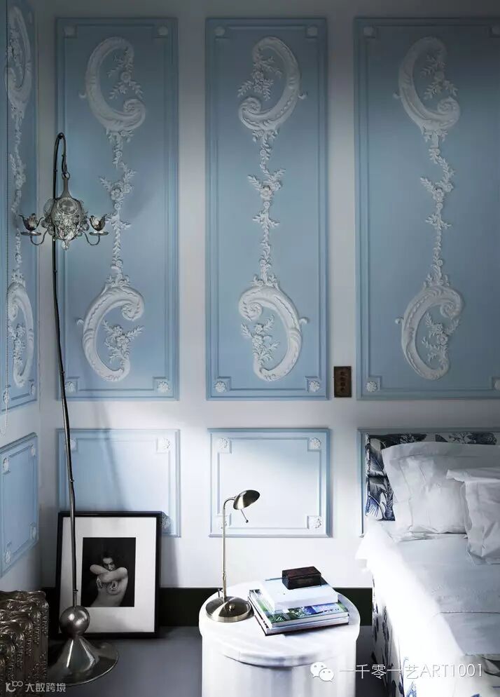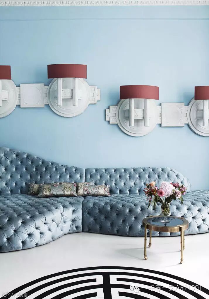 英国博采众长的折衷主义室内设计师DanielleMoudaber的私宅运用了丰富的不规则造型和罕见物品,一切元素都与梦幻而柔和的蓝色背景墙形成对比,并与白色装饰一起,为空间营造出了梦幻而动感的旋律。