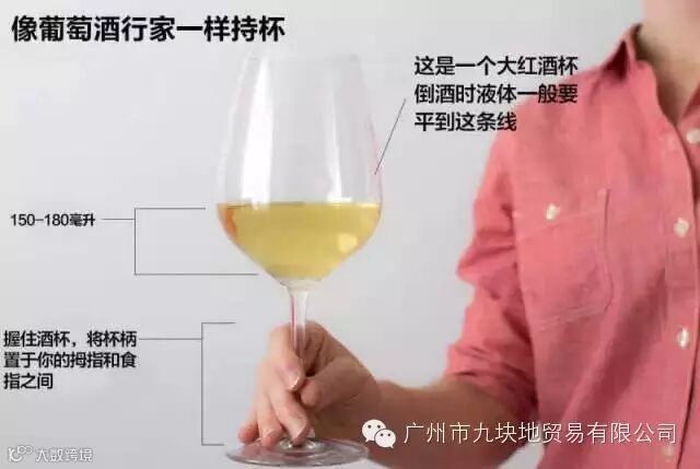 虽说持杯习惯可依个人喜好而定,但最标准的持杯方式是手持酒杯的杯柄或底座而不是杯身,这样可避免我们的体温影响到葡萄酒的理想适饮温度。