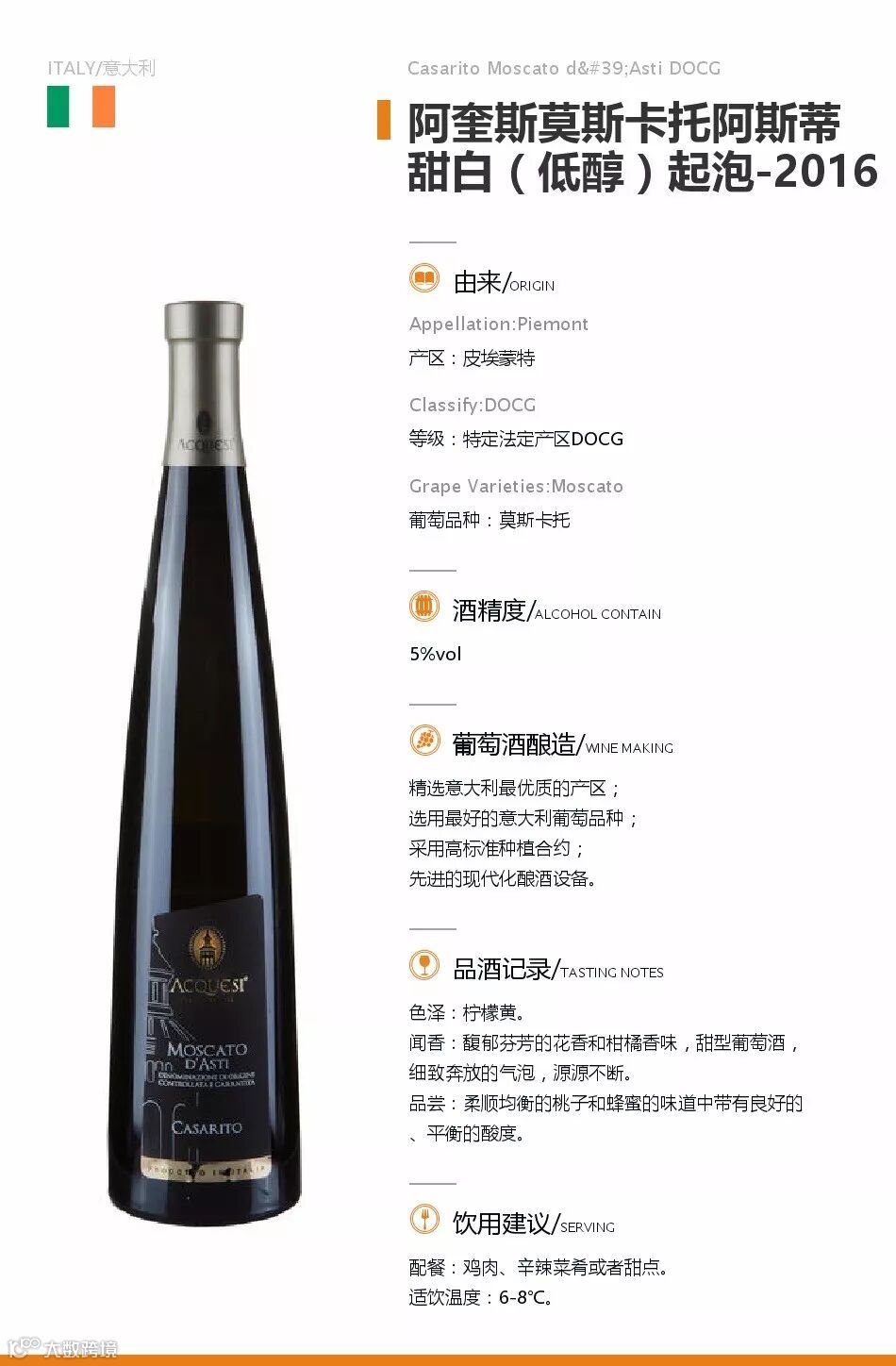 "阿奎斯莫斯卡托阿斯蒂甜白(低醇)葡萄酒"