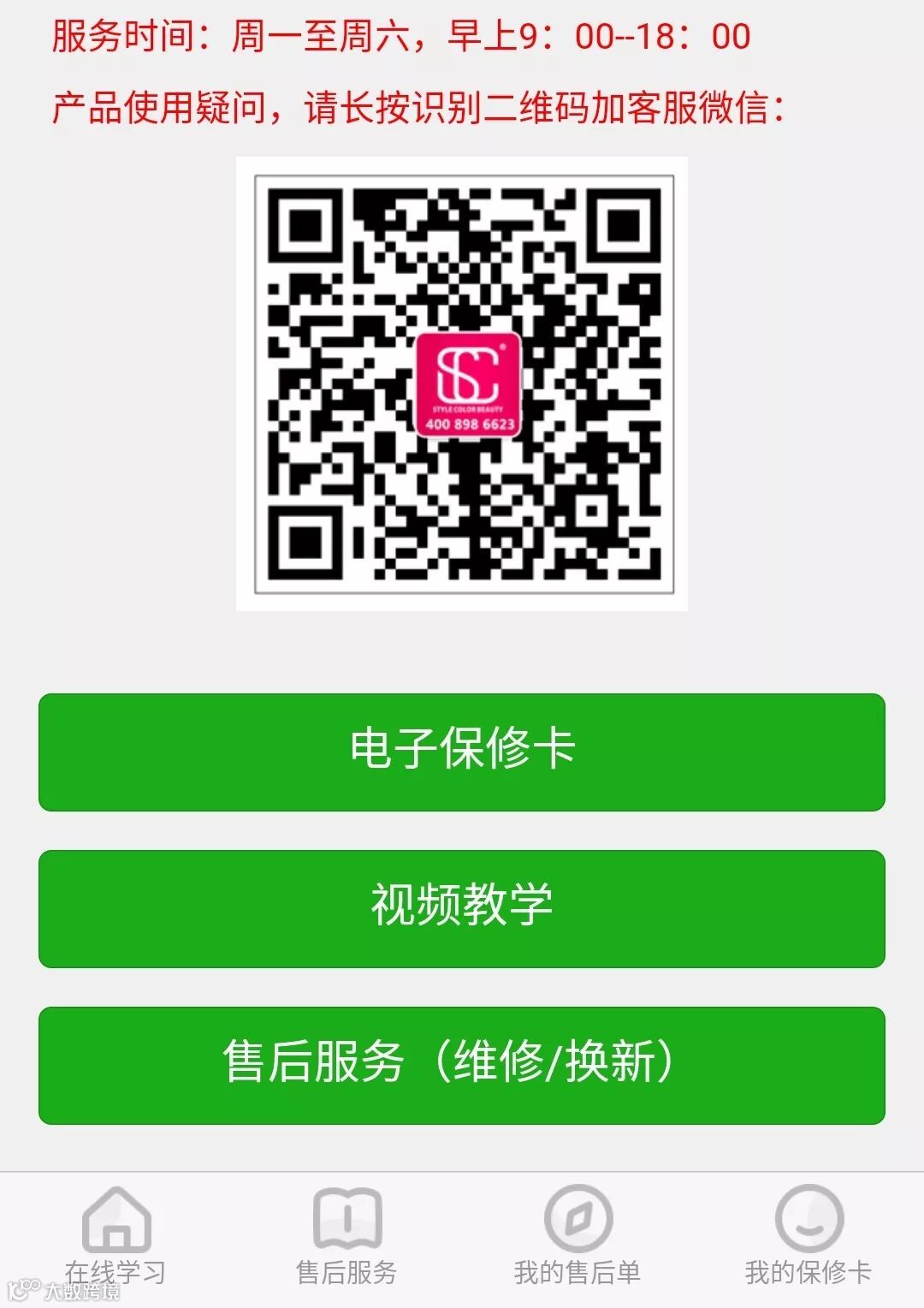 1、拍照机器外盒上的二维码(二维码在机器侧面)同机器与变压器的编码(纸质修卡上有)发给售后客服手动录入。