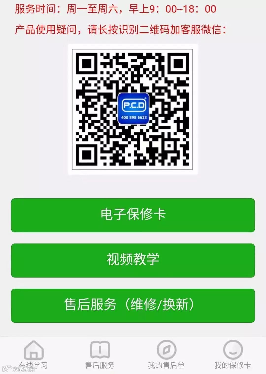 扫码完毕,点击“电子保修卡”(PCD产品会显示下图)