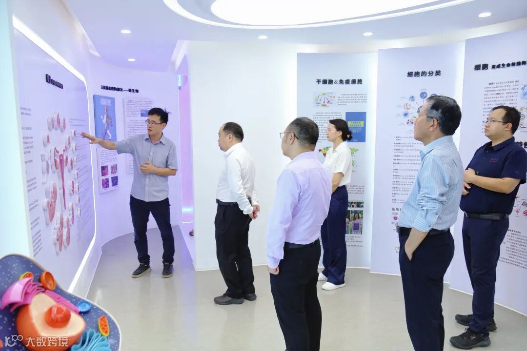 调研伊始,李银保副局长一行走访瑞因科普教育基地、医学检验实验室及干细胞 GMP 工厂,实地察看细胞技术研发、临床转化、产业化全链条布局与成果,细致了解核心环节技术标准与操作流程,重点考察花都、黄埔两大政府综合细胞库的标准化运营及数字化管控体系。