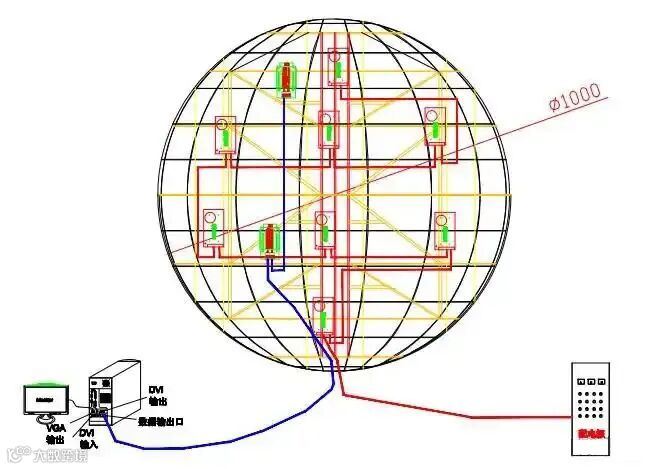 控制器的作用是控制LED灯珠亮度和颜色变化,使LED球形屏的显示效果真实生动。