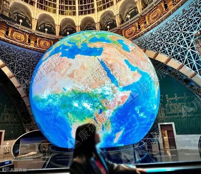 在俄罗斯莫斯科这座历史与科技交织的城市中,当地最大的航天博物馆内,一座直径达16.3米的巨型 LED 球形屏巍然矗立,它就是 “蔚蓝星球”。康硕展运用尖端显示技术,将地球置于浩瀚宇宙的场景逼真呈现。当游客步入博物馆,抬头望去,球形屏上,蔚蓝的地球在深邃的宇宙中缓缓转动,云层翻涌、极光闪烁,完美复刻宇航员在太空俯瞰地球的视角。“蔚蓝星球” 不仅是视觉奇观,更是承载着人类对地球的敬畏与对生命互联的深刻理解,每年吸引无数航天爱好者慕名而来,成为探索宇宙奥秘的沉浸式体验圣地。