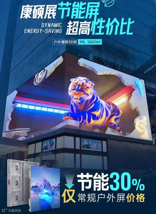 在城市商业升级与绿色低碳双轮驱动下,户外显示行业正迎来能效与视觉的双重革命。康硕展立足技术创新,以KAH户外动态节能屏为核心载体,融合裸眼3D沉浸式显示技术,推出新一代户外LED全场景解决方案,重新定义户外大屏 “节能、震撼、稳定、长效” 的价值标准。