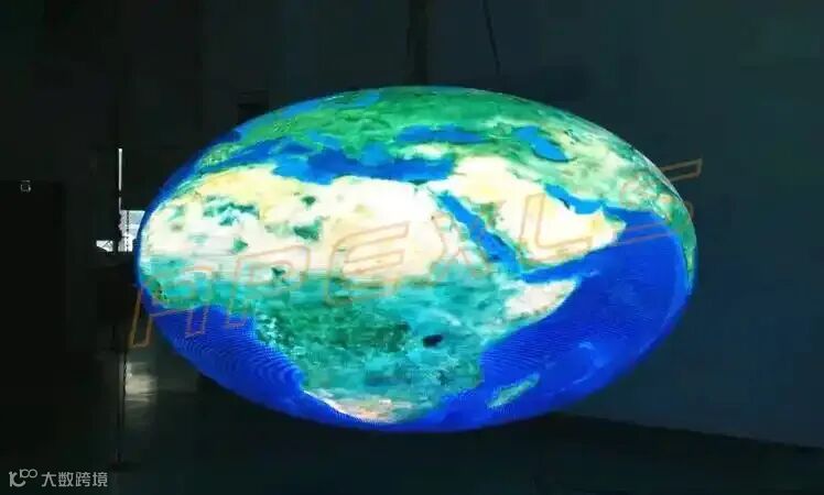 LED椭圆球形屏是在LED球形屏基础上精心升级改造的杰作,将LED球形屏上下压扁后,虽每个水平面截面是圆形的,但其垂直截面均是椭圆形。整个外形看起来犹如巨大的恐龙蛋,因此也可称之为LED蛋形屏。相比常规的LED球形屏,LED椭圆形屏不仅是创意的提升,更是对复杂结构技术的考验。将三角形LED模组、梯形模组组装在一个椭球形整体钢结构上,需保证其平整度高,拼接缝隙小。通过软件自动抽点控制系统,制作特殊的视频源来,高度还原图像,真正实现三维360°LED显示技术。
